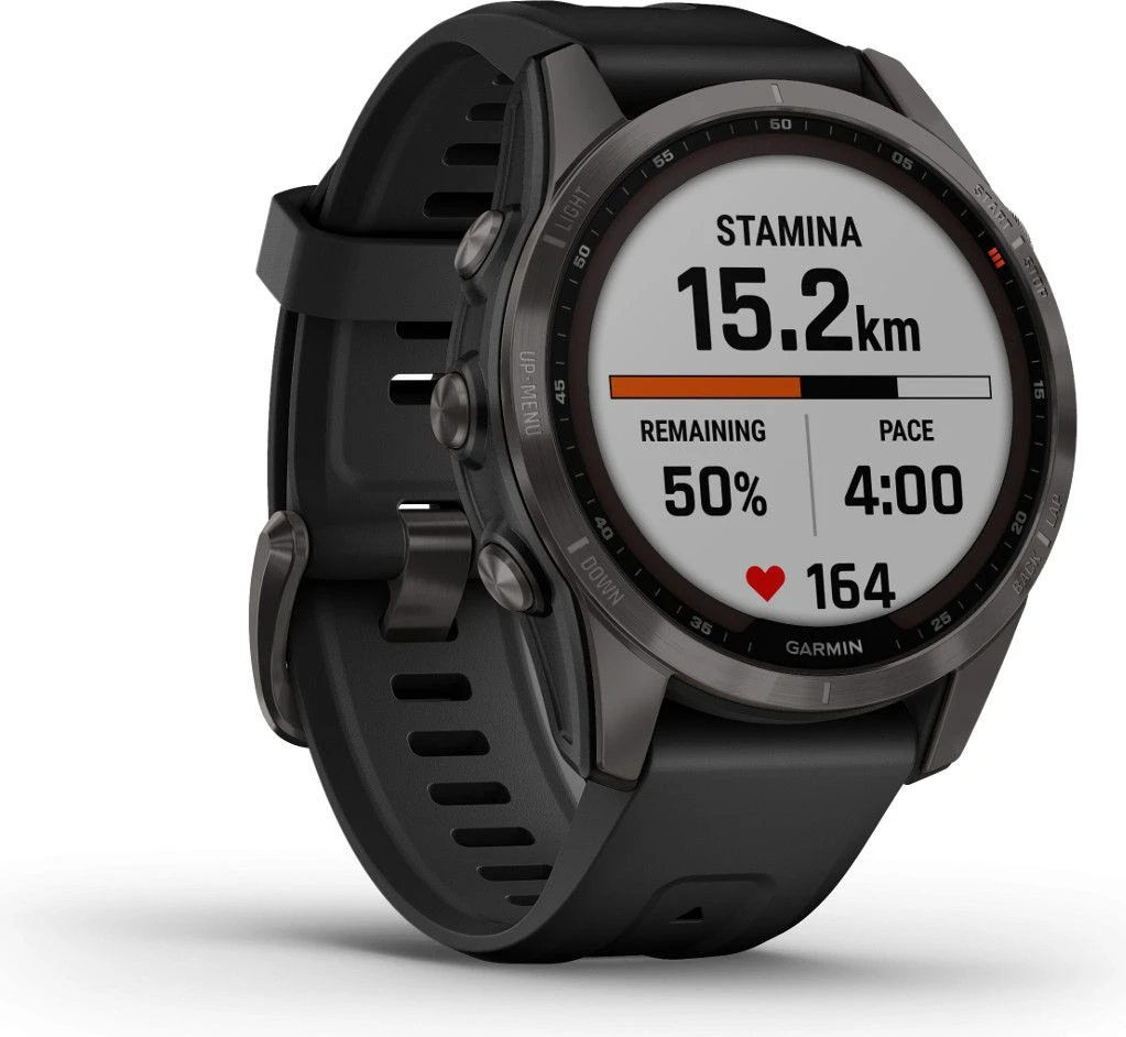 - Fenix 7S Sapphire Solar, titanium, Carbon Grey DLC with black strap: 010-02539-25