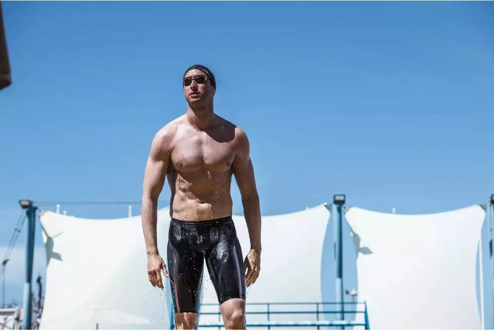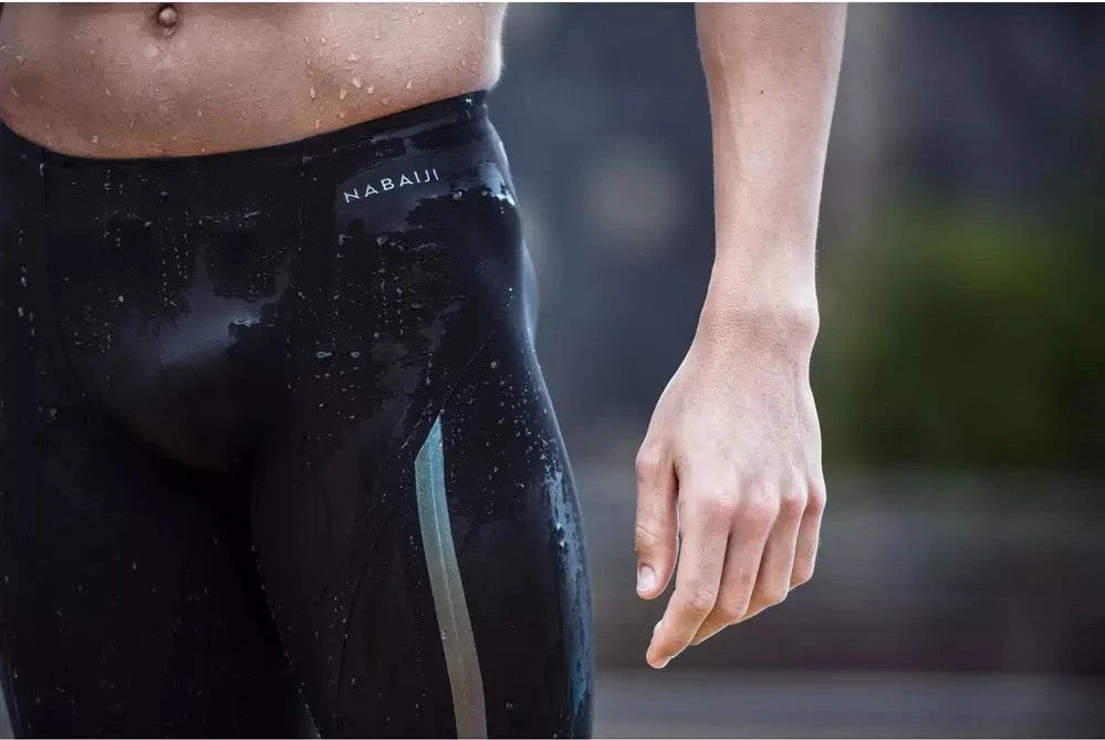 Designed for the competitive swimmer. This jammer is developed with Fabien Gilot, Olympic Champion and technical partner of NABAIJI. The jammer shape guarantees better coverage of the quadriceps and glutes. Good muscle compression thanks to an adapted pattern and to an extensible material. Reinforcement bands compress the muscles used during practice. This product takes longer to put on than a swimsuit due to its tight fit.